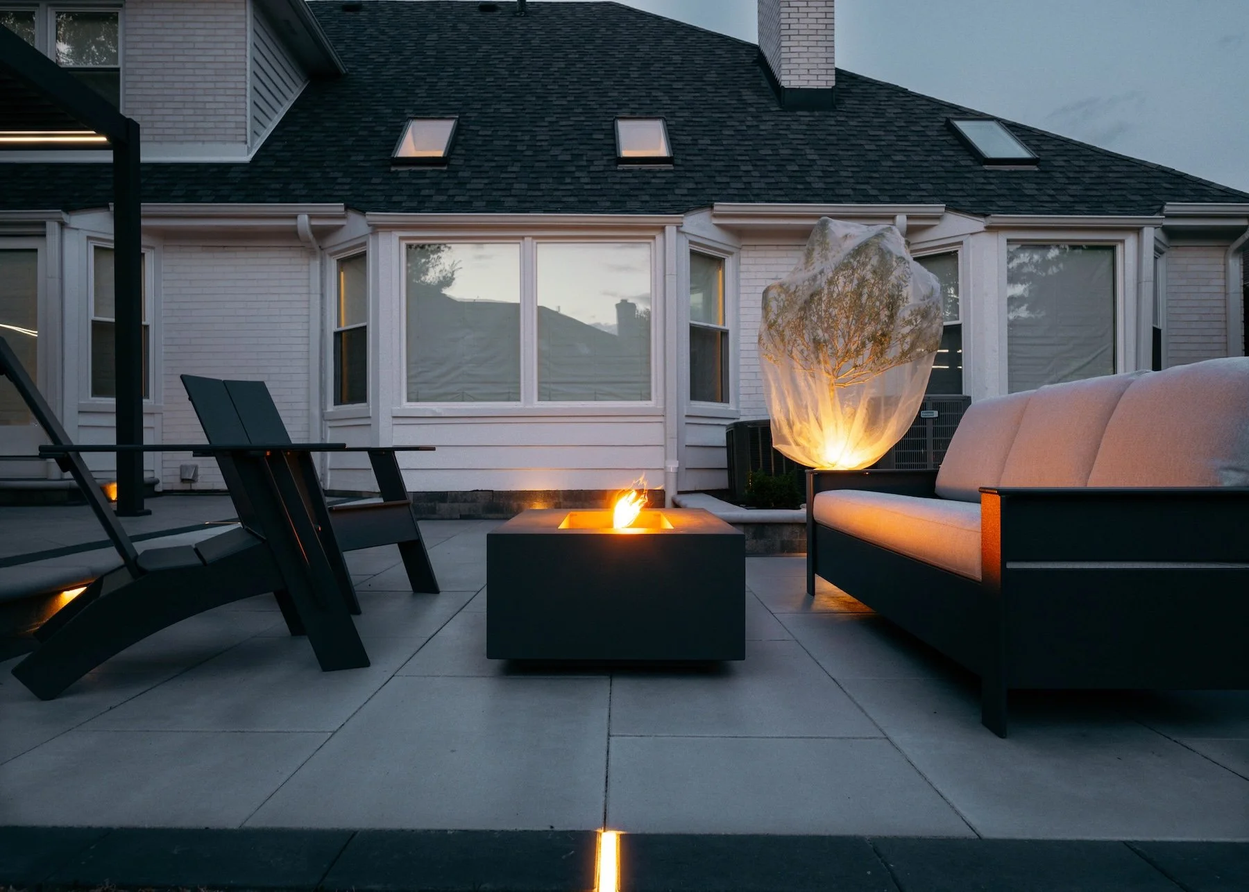 Now, this backyard is more than just a patio—it’s a destination. The homeowner has the perfect foundation to create their dream outdoor lounge, with the warmth of wood, the elegance of stone, and the creativity of expert craftsmanship.